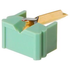 This is a replacement stylus (not original Shure) for the Shure M91E and M93e magnetic cartridges. It has a polished elliptical diamond with a tip radius of .0003 x .0007. Made in Japan. Light green color.